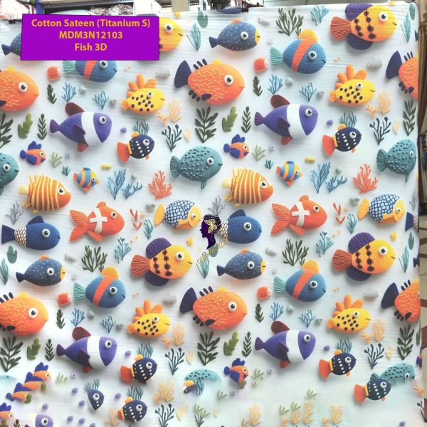 Set Sprei, Bedcover dan Quilt Cover Cotton Sateen Fish 3D-Titanium S.