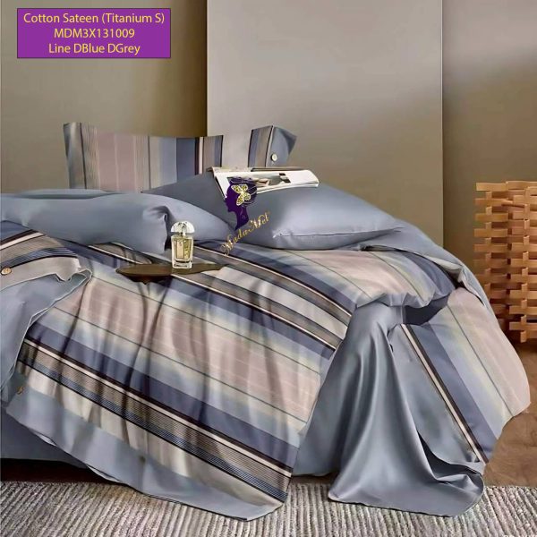 Set Sprei, Bedcover dan Quilt Cover Cotton Sateen Line DBlue Grey Titanium S