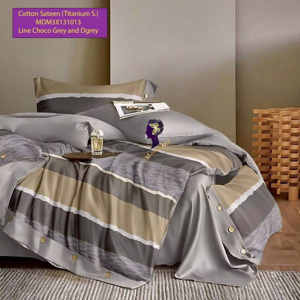 Set Sprei, Bedcover dan Quilt Cover Cotton Sateen Line Choco Grey and Dgrey Titanium S