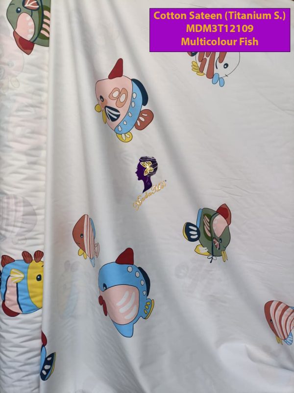 Set Sprei, Bedcover dan Quilt Cover Cotton Sateen Multicolour Fish Titanium S.
